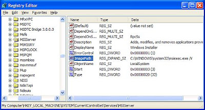HKEY_LOCAL_MACHINE\SYSTEM\CurrentControlSet\Services\MSIServer